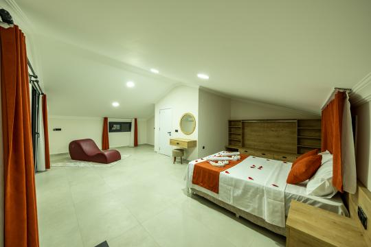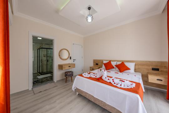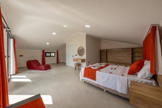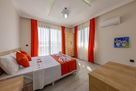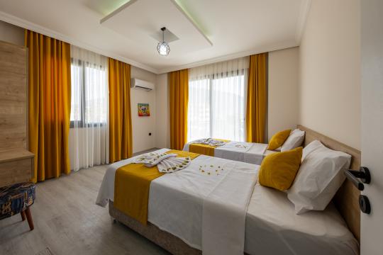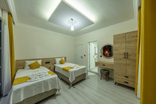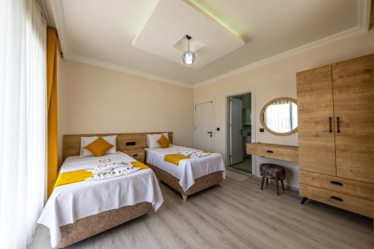 Villa Arnes üç katlı bir villadır ve üç yatak odası bulunmaktadır. Villamızın zemin katında açık mutfak, oturma alanı, klima, TV, WC bulunmaktadır. Üst kata çıktığımızda iki yatak odası bulunmaktadır. Bir yatak odası içerisinde bir adet çift kişilik yatak, diğer yatak odasında iki adet tek kişilik yatak bulunmaktadır ve odaların içerisinde ebeveyn banyosu, klima mevcuttur. Çatı katında üçüncü yatak odası bulunmaktadır. Bu odanın içerisinde bir adet çift kişilik yatak, ebeveyn banyosu, klima mevcuttur. Toplamda 6 kişi rahatlıkla villamızda konaklayabilmektedir.