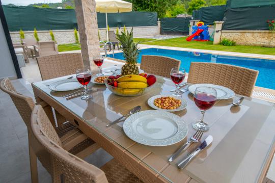 Not: Doğa içerisinde bulunan tüm villalarımızda düzenli olarak ilaçlama yapılmaktadır. Ancak yine de çevrede kelebek, böcek, sinek vb. bulunma ihtimali bulunmaktadır.