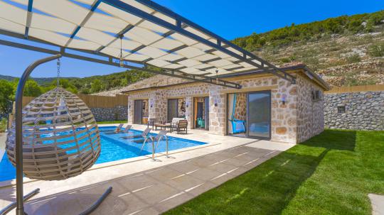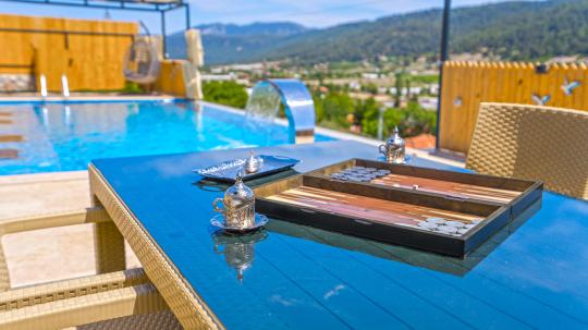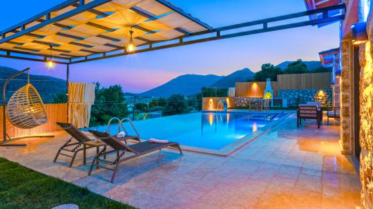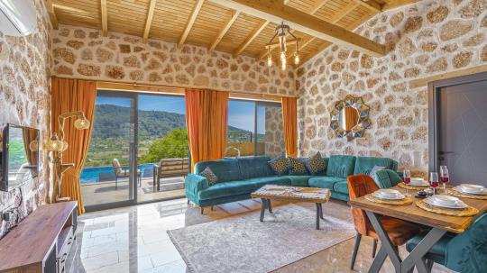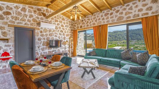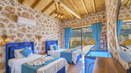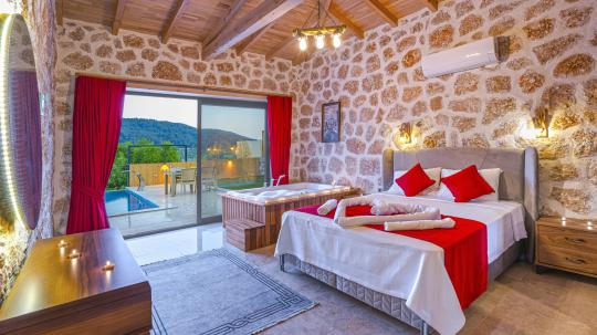 Villa Asel 1,Kalkan’ın Sarıbelen bölgesinde bulunan 2 yatak odası ve 4 kişilik kapasitesiyle size özel havuzlu, taş yapı lüks villalarımızdan biridir. Özenli lüks dekoru, ince dokunuşları ve dizaynı villa tatilinizi keyiflendirecek ve siz değerli misafirlerimizde tatilinizin hiç bitmemesi isteğini uyandıracaktır. Temiz havası sayesinde son derece konforlu bir tatil geçireceğiniz Villa Asel 1 muhafazakar olarak dizayn edilmiş; çekirdek aileler ve balayı çiftleri için oldukça ideal seçeneklerden biridir. Tek kat üzerine kurulu villa oldukça kullanışlı ve zevkli bir şekilde döşenmiştir.
