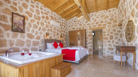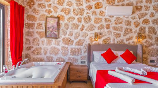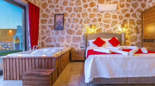 1. Yatak Odası : 1 adet çift kişilik yatak, makyaj masası, klima, elbise dolabı, komodin, Banyo&WC ve Jakuzi bulunmaktadır.
