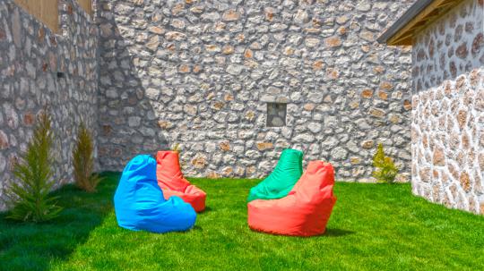 Bahçe : Şezlonglar, güneş şemsiyesi, barbekü, sandalye ve masa bulunmaktadır.