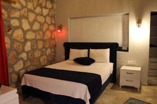 1.Yatak odası: Çift kişilik yatak, jakuzi, ebeveyn banyosu, klima, komodin, elbise dolabı ve havuz terasına çıkış kapısı bulunmaktadır.