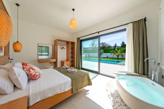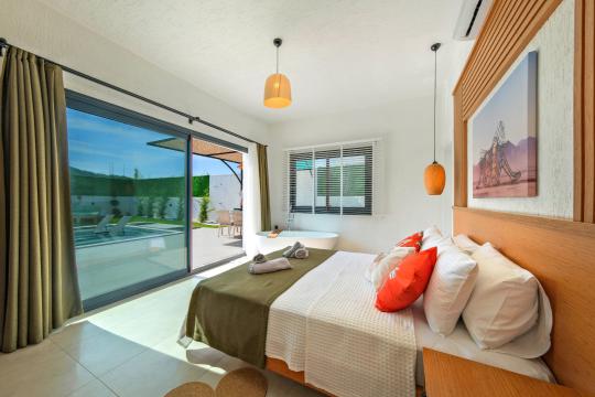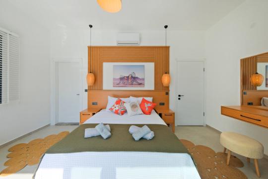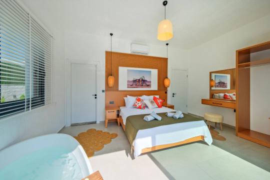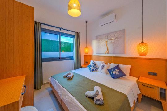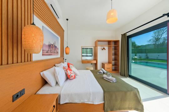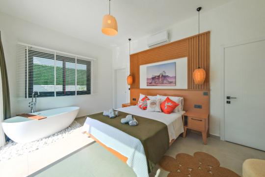 Villamızda toplam 2 yatak odası bulunmaktadır. Birinci yatak odası içerisinde bir adet çift kişilik yatak, ebeveyn banyosu, küvet ve klima bulunmaktadır. İkinci yatak odası içerisinde bir adet çift kişilik yatak, ebeveyn banyosu, küvet ve klima yer almaktadır. Toplamda dört kişinin rahatlıkla konaklayabilmesi için her şeyin düşünüldüğü tatil villamız sizleri beklemektedir.
