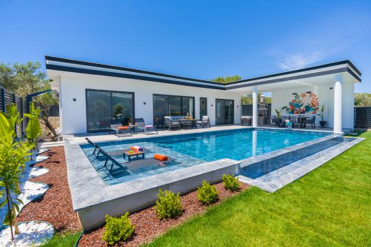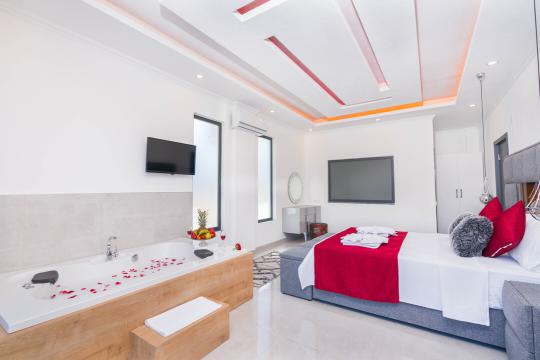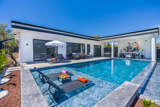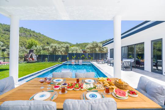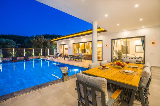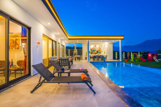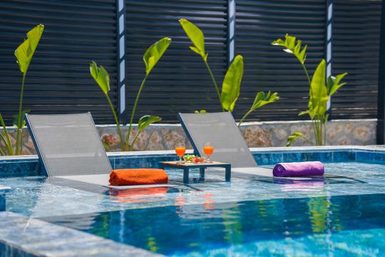 Villamızın havuz alanı korunaklı yapıya sahiptir ve tuzlu su havuzsistemi bulunmaktadır. Muhafazakar ailelerimiz ve balayı çiftlerimiz için ideal tatil villalarımız arasında yer almaktadır.