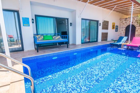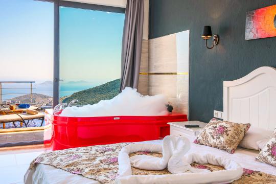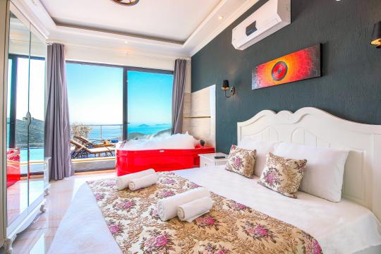 Villa Başak Kalkan Akbel mevkiinde konumlu 2 kişi konaklama kapasitesine sahip tek yatak odası bulunan balayı çiftlerimiz için dizayn edilmiş kiralık tatil villamızdır. Yatak odasında bulunan jakuzi de senenin tüm yorgunluğunu üzerinizden atabilirsiniz. Muhteşem gün batımı manzarası olan villamızda unutulmaz bir balayı tatili geçirebilirsiniz.