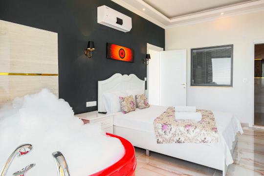 1. Yatak Odası 1 Çift Kişilik Yatak + Elbise Dolabı + Komodin + Jakuzi + Ebeveyn Banyo + klima