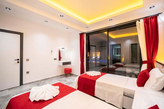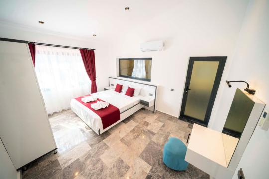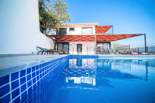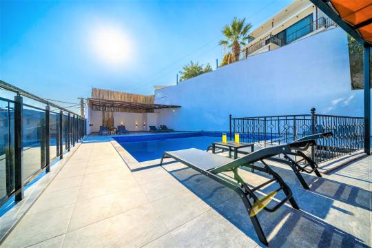 Villa Bergama Kalkan Akbel mevkiinde yer almaktadır. Lüks Kiralık villamız 10 kişi konaklama kapasitesine sahiptir. Villamızın her odasında ebeveyn banyosu bulunmaktadır. Tatil boyunca bir çok aktivite yapabileceğiniz villamız'da sinema salonu ve spor aletleri bulunmaktadır. Korunaklı özel yüzme havuzu olan kiralık villamız, kalabalık aileler ve arkadaş grupları için ideal bir villadır.
