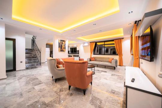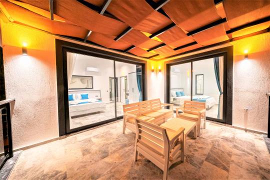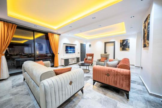 Salonumuzda oturma grubu, LED TV, sehpa, klima bulunmaktadır. Havuz terasına çıkış yapılabilmektedir.