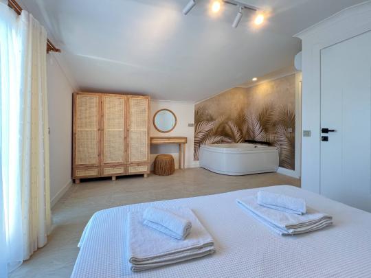 1. Yatak Odası : Çift kişilik bir adet yatak, jakuzi, elbise dolabı, komodin, klima, özel banyo ve tuvalet bulunmaktadır.