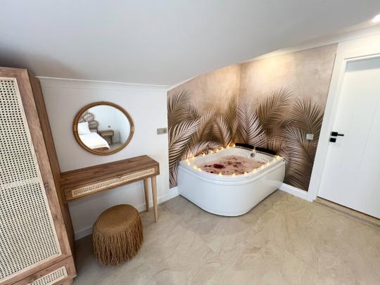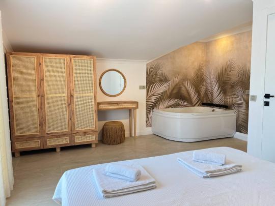 1. Yatak Odası : Çift kişilik bir adet yatak, jakuzi, elbise dolabı, komodin, klima, özel banyo ve tuvalet bulunmaktadır.