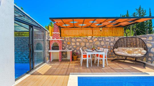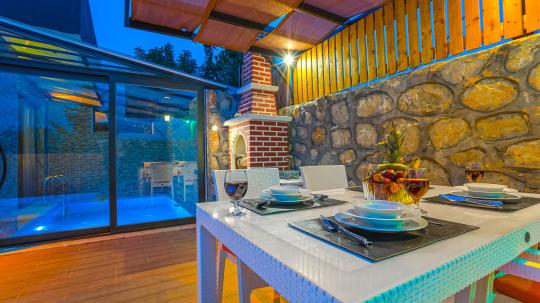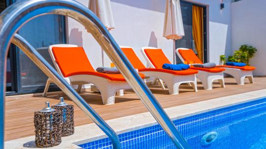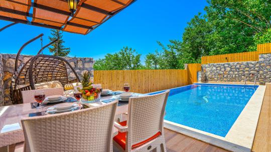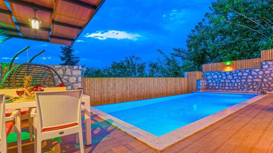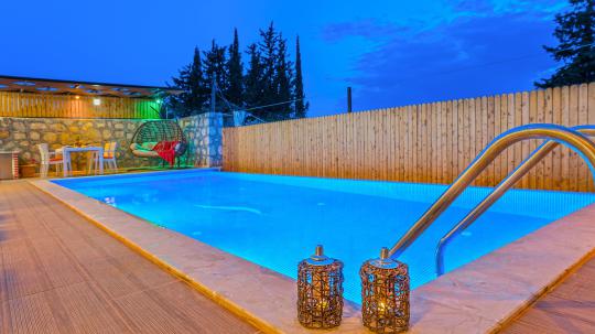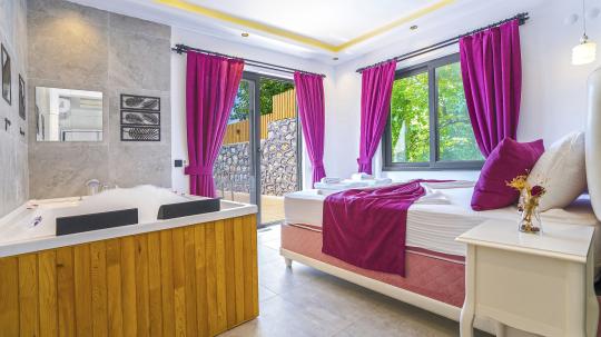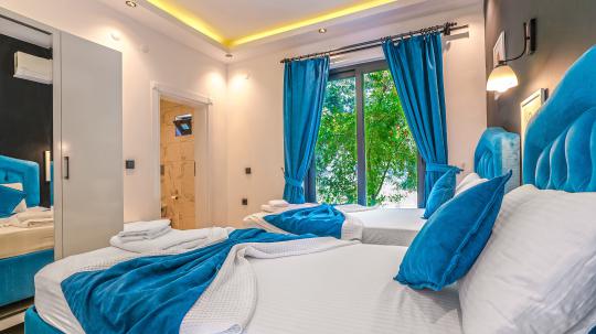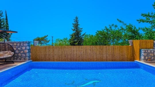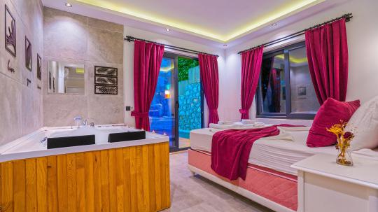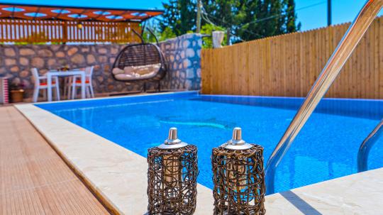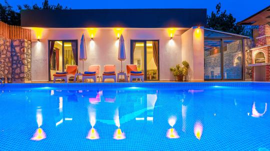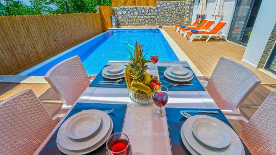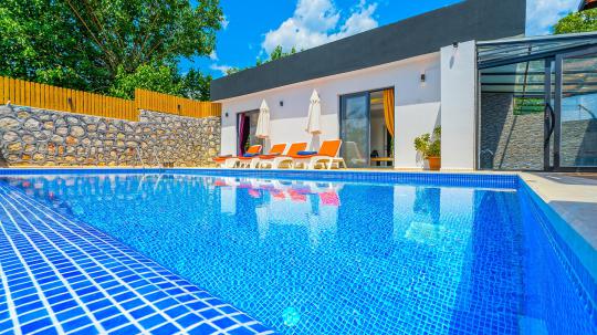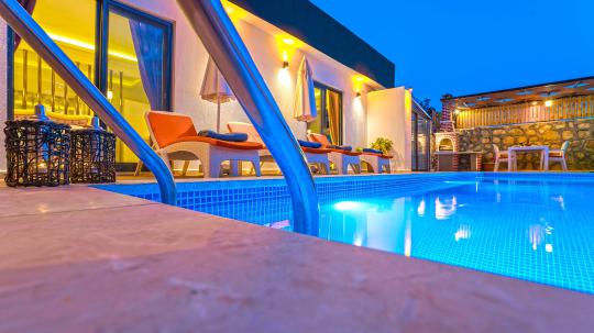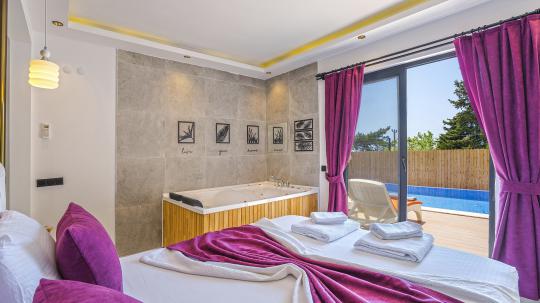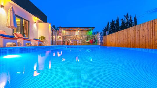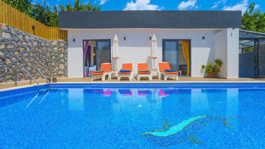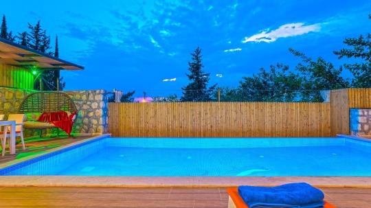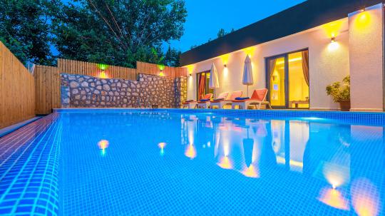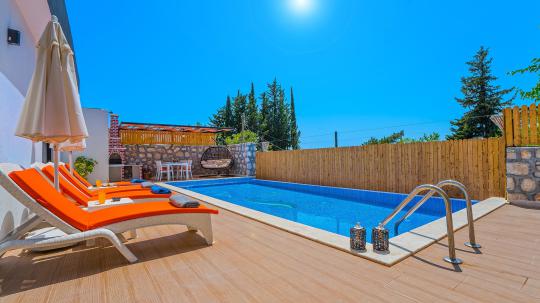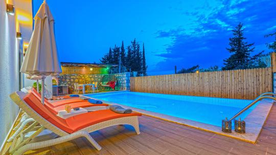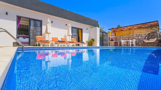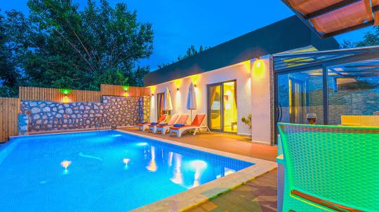 Kalkan Üzümlü Mevkiinde bulunan Villa Bonnie, 2 yatak odalı 4 kişilik konaklama kapasitesine sahip olup Doğa manzaralı ısıtmalı özel havuzlu ve jakuzili villalarımızdan biridir. Sakin ve huzurlu bir tatil geçirmek isteyen Muhafazakâr konuklarımız ve Balayı çiftlerimiz için özel olarak tasarlanmış olup, konforunuz için her ayrıntı düşünülerek dizayn edilmiştir.
