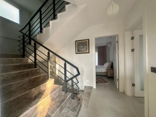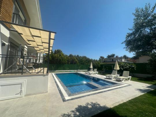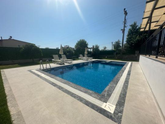 Havuz terasında kapasiteye uygun şezlong takımı, oturma grubu, barbekü; çocuk oyun alanı bulunan villanın iç mekanında ihtiyaçlarınıza karşılık verecek konforlu oturma odası, tam donanımlı açık mutfağı; ÜÇ yatak odasında çift kişilik yatak ve ebeveyn banyosu; iki yatak odasında ise iki tek kişilik yatak ve banyo bulunmaktadır.