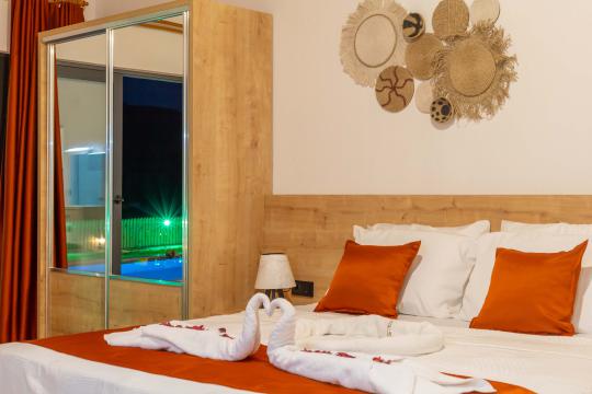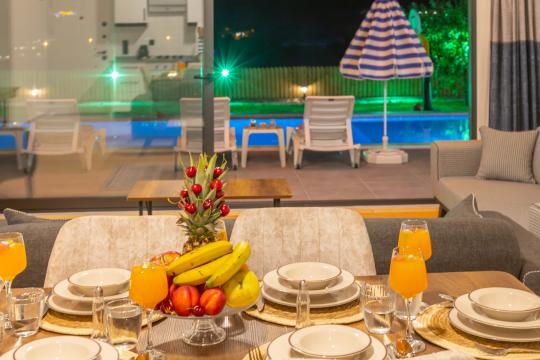 Villamızın ayrıca konaklamanız esnasında ihtiyaç duyabileceğiniz tüm eşyalarla donatılmış şekildedir. Bu sayede konaklama süreciniz boyunca villamızda bulunan tüm alanlar kullanımınıza sunulmaktadır. Villamızda konakladığınız süre boyunca villamızda bulunan havuza girebilir, şezlongta güneşlenebilir veya yeşil bahçe alanında barbekü keyfi yapabilirsiniz.