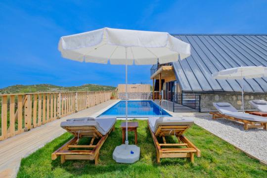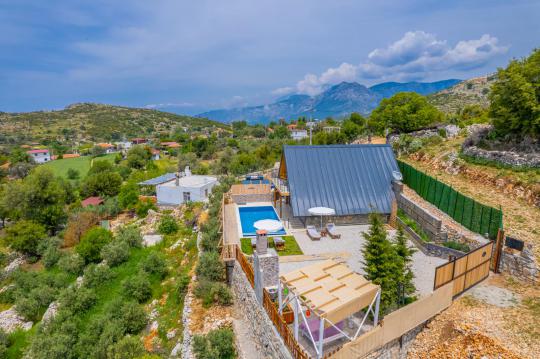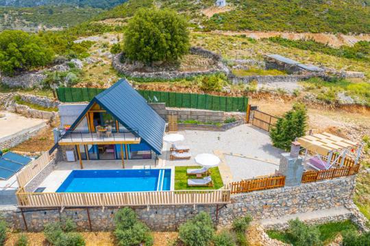 Villa Butterfly 4 kişilik kapasiteye sahip olup 2 yatak odası, 2 banyosu ve jakuzisi mevcuttur. Açık mutfağı ve kendine ait bahçesinde bir havuzu vardır.