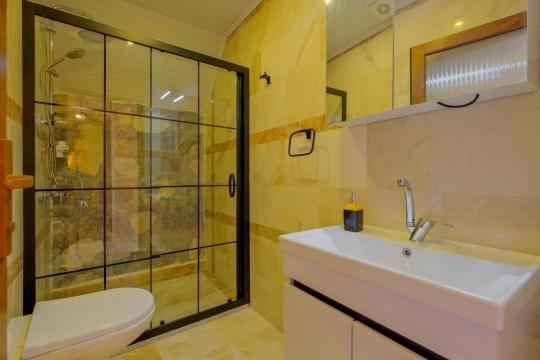 Barbekü, masa, sandalyeler, şezlonglar ve şemsiyeler bahçe keyfini sınırsız yaşamanıza imkan tanıyor. Salonunda oturma grubu, televizyon, eşyalar bulunurken, tüm odalar için ayrı klima imkanı var.