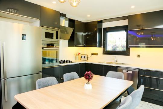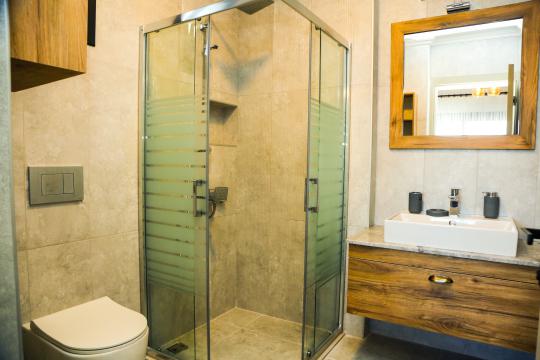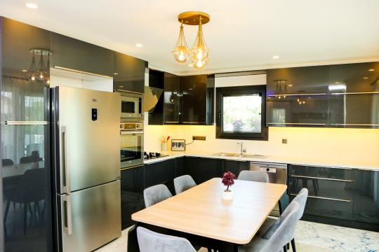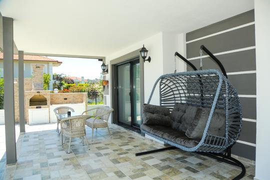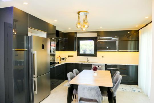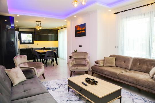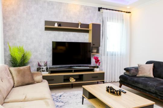 180 M2 kullanım alanına sahip villamızın salonunda klima ve TV bulunmaktadır.