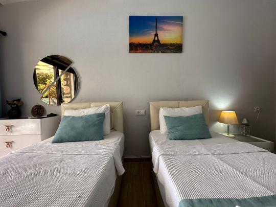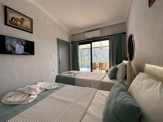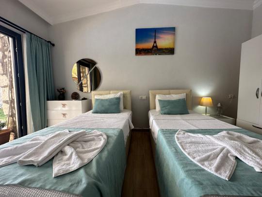 Villa Çalışkan doğa içerisindeki konumu sayesinden sessiz ve sakin bir tatil geçirebilmeniz için imkan sağlamaktadır. Villamızın içerisinde 2 adet yatak odası ve 2 adet WC-Duş mevcuttur. Birinci yatak odası içerisinde çift kişilik yatak, ebeveyn banyosu, TV ve klima mevcuttur. İkinci yatak odası içerisinde iki tek kişilik yatak, ebeveyn banyosu, TV ve klima mevcuttur. Ortak alanda açık mutfak-salon, klima ve TV mevcuttur.