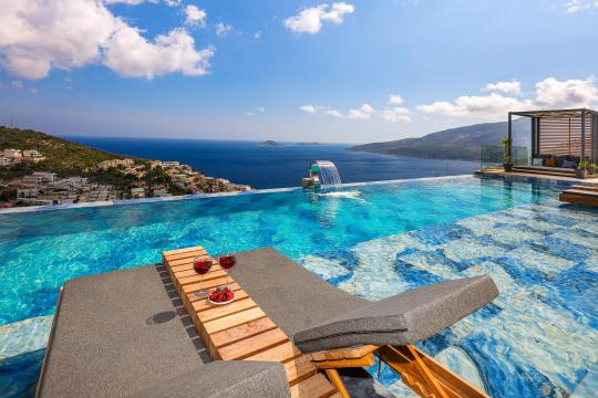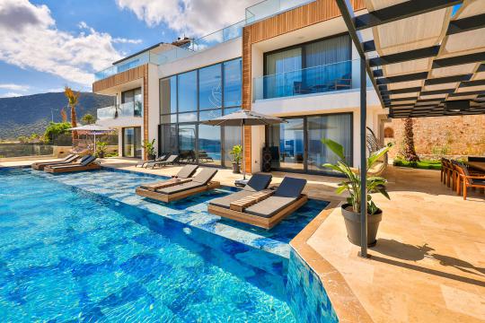 Villa Calpas, Antalya Kaş Kalkan bölgesinin Kalamar Mevkiinde bulunmaktadır. Lüks Villamız Deniz manzarası ve konforu ile sizlere mükemmel bir tatil keyfi sunuyor. İçerisinde Sonsuzluk havuzu, ses sistemi, projeksiyon sistemi, jakuzi vb. özellikleri ile Lüks Villadır. 6 Yatak odalı olup toplamda 12 kişi kapasiteli bir villadır.