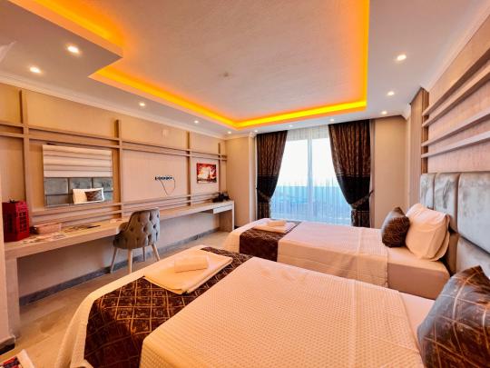 Detayları : 2 adet tek kişilik yatak, Makyaj masası, Komodin, Klima, Elbise dolabı, Banyo, Balkon bulunmaktadır.