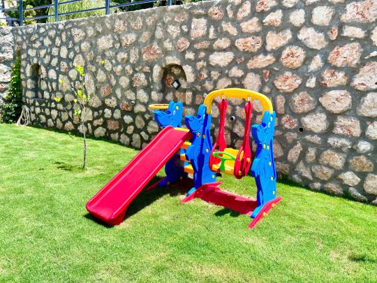 Detayları : Oturma grubu, 6 adet şezlong, Barbekü, Salıncak, Oyun Parkı, Güneş şemsiyesi, Çocuk havuzu