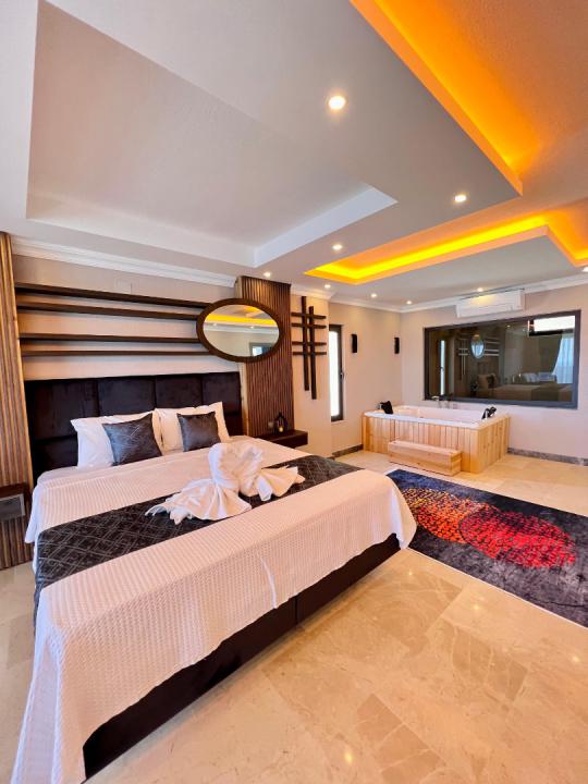 Detayları : Çift kişilik yatak, Makyaj masası, Komodin, Klima, Elbise dolabı, Jakuzi, Banyo, Balkon bulunmaktadır.