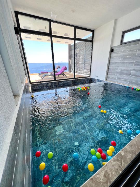Kapalı Havuz Ebatları: En; 3,00 m Boy; 5,00 m Derinlik; 1,60 m Kapalı havuz ısıtmalı olup, misafirlerimizin isteğine göre ücretsiz ( 1 Ekim - 20 Nisan tarihleri arasında ) olarak ısı derecesi ayarlanabilmektedir. Diğer tarihlerde havuz ısıtması isteyen misafirlerimiz haftalık 7.500 TL karşılığında yararalanabilirler. (Maksimum 26 - 27 derece)