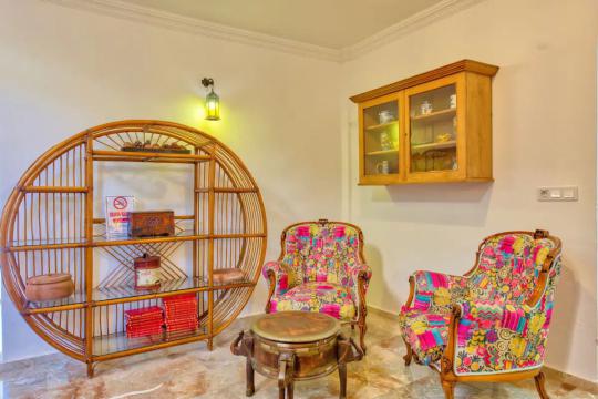 Salon : Oturma grubu, uydu alıcısı, TV, klima, lavabo, ütü, ütü masası, şömine, elektrik süpürgesi.