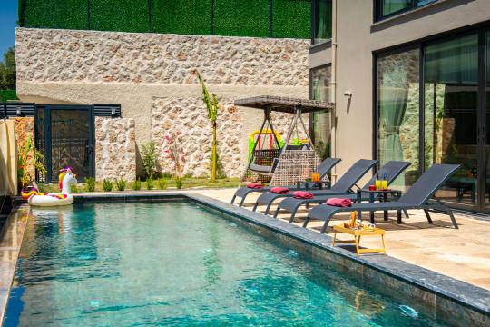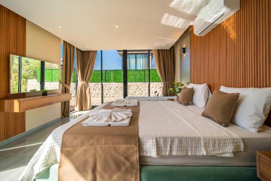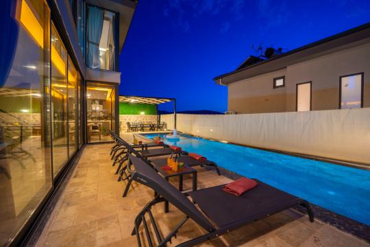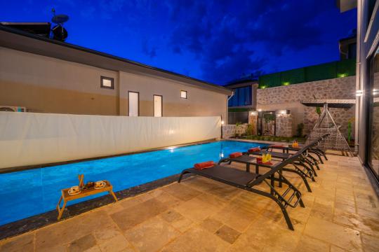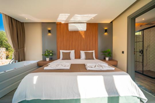 Villa Carvina, şık ve modern tasarımıyla öne çıkan lüks 2 yatak odalı bir tatil villasıdır. Ana yatak odasındaki özel jakuzi, tatilinize ekstra rahatlama ve romantizm katarken, villanın zarif detaylarla dekore edilmiş iç mekanı konforunuzu en üst seviyeye taşır.