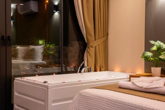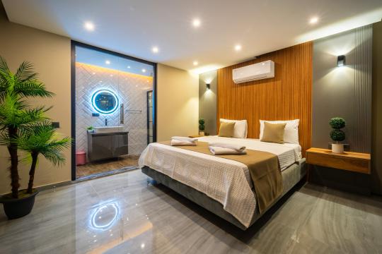 Yatak Odası 1:Çift kişilik yatak, gardırop, tuvalet masası, jakuzi, komodin, klima, banyo ve tuvalet bulunmaktadır.