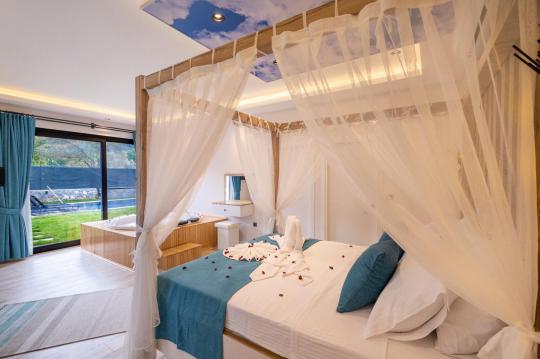 Korunaklı Havuz: Dışarıdan görünmeyen havuzu ile Villa Palace Small, gizlilik ve özel bir tatil deneyimi sunar. Bu özellik, özellikle balayı çiftleri için büyük bir avantajdır.