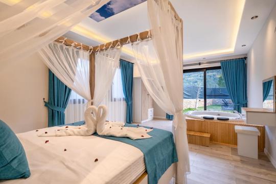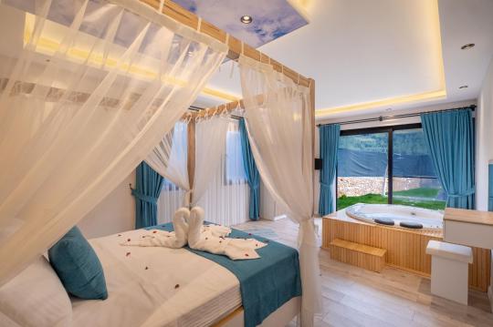 Villa Cazibe, Fethiye Kayaköy bölgesinde yer alan, lüks ve romantik bir tatil villasıdır. 2 kişi kapasitesi ile çiftler için özel olarak tasarlanmış olan bu villa, huzurlu ve unutulmaz bir tatil deneyimi sunmaktadır.