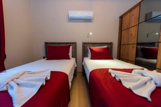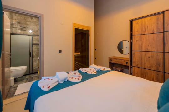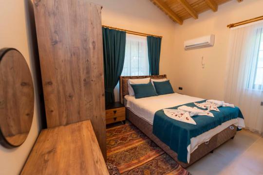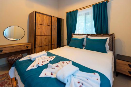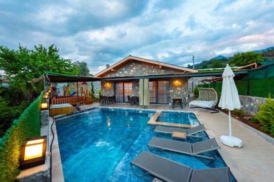 Fethiye Yakaköy mevkiinde bulunan villa 2 yatak odasıyla 4 kişilik konaklama kapasitesi sunmaktadır. Korunaklı havuz alanı ile kalabalık aile ve geniş arkadaş gruplarına hitap etmektedir.