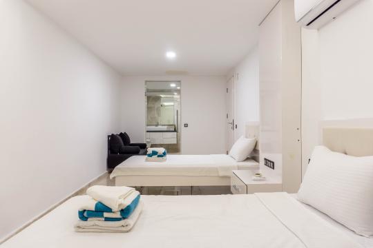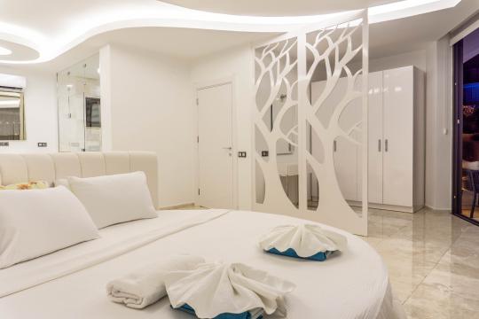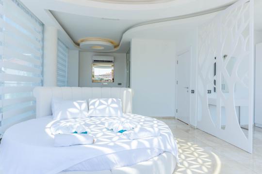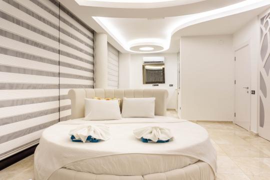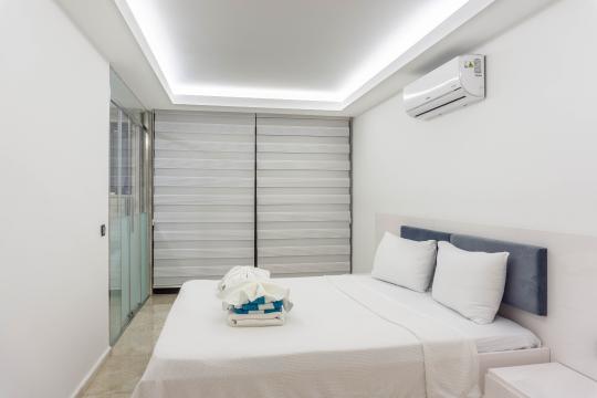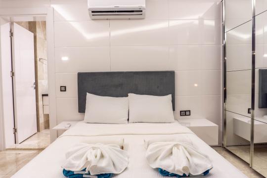 2.Yatak odası: Yatak odası içerisinde, 1 adet çift kişilik yatak, klima, TV, elbise dolabı, komodin, makyaj masası, banyo ve tuvalet yer almaktadır.