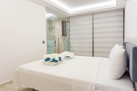 3.Yatak odası: Yatak odası içerisinde, 1 adet çift kişilik yatak, klima, elbise dolabı, komodin, makyaj masası, banyo ve tuvalet yer almaktadır.