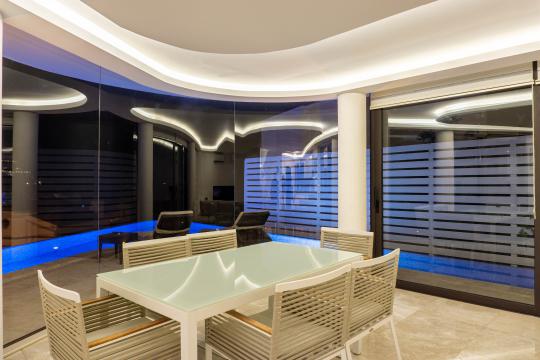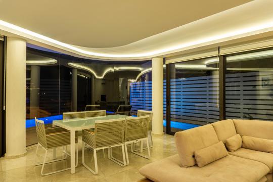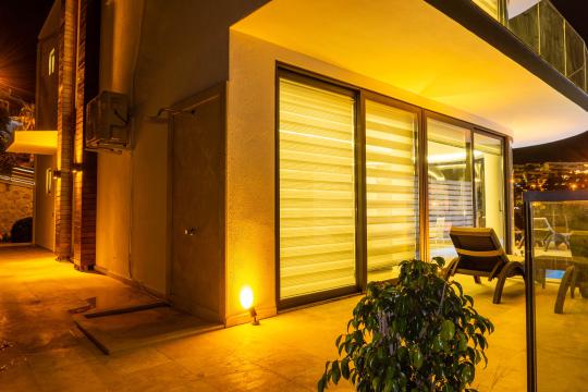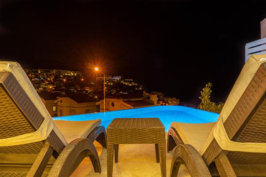 Bahçe: Deniz manzaralı bahçe içerisinde, özel yüzme havuzu, şezlonglar, güneş şemsiyesi, bahçe yemek masası ve barbekü yer almaktadır.