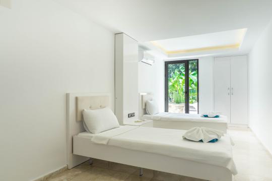 4.Yatak Odası: Yatak odası içerisinde, 2 adet tek kişilik yatak, klima, elbise dolabı, komodin, makyaj masası, banyo ve tuvalet yer almaktadır.