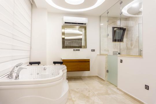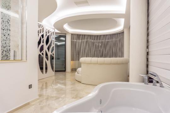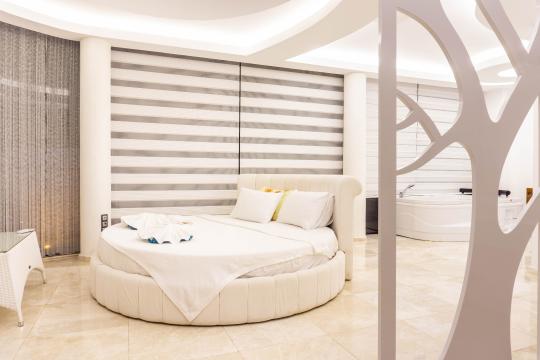 1.Yatak odası: Yatak odası içerisinde, 1 adet çift kişilik yatak, klima, elbise dolabı, komodin, makyaj masası, jakuzi banyo ve tuvalet yer almaktadır.