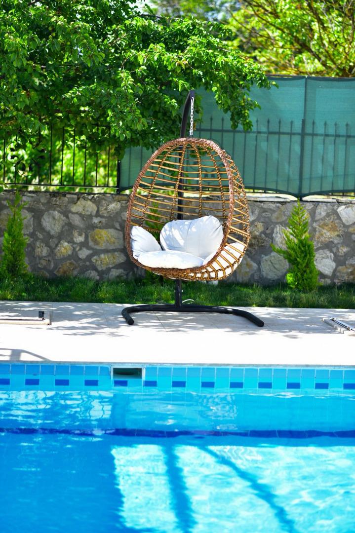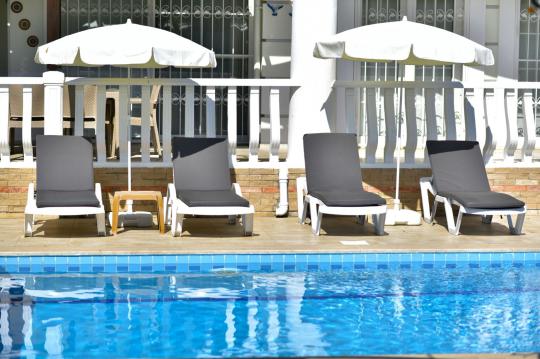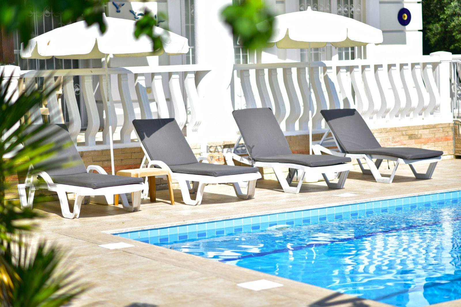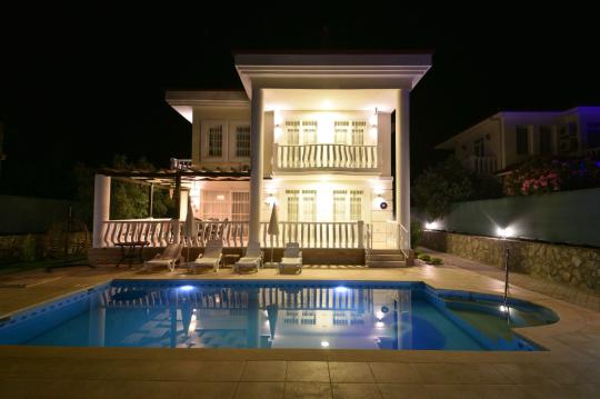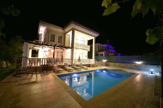 Geniş havuz ve bahçe alanına sahip villada, kapasiteye uygun oturma alanı, şezlong takımı, barbekü alanı; havuz terasına açılan konforlu oturma odası; ihtiyaçlarınızı karşılayacak donanıma sahip mutfağı bulunmaktadır.