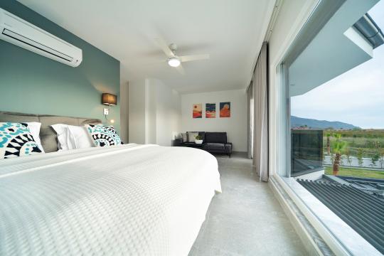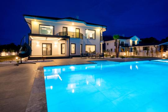 Muhteşem villamızın yeterli alanı, havuzlu ve barbekü teraslı geniş bir bahçesi vardır. Villamız gölü ve denizi birbirine bağlayan Dalyan Deltasının bir kolunda bulunmaktadır. Odaların hepsi çok modern bir şekilde döşenmiştir ve kalbinizin istediği her şeye sahiptir. Tüm odaların yağmur duşu ve soyunma odası bulunan kendi banyosu vardır. Büyük boy yataklar iyi bir gece uykusunu garanti eder.