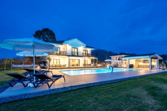 Muhteşem villamızın yeterli alanı, havuzlu ve barbekü teraslı geniş bir bahçesi vardır. Villamız gölü ve denizi birbirine bağlayan Dalyan Deltasının bir kolunda bulunmaktadır. Odaların hepsi çok modern bir şekilde döşenmiştir ve kalbinizin istediği her şeye sahiptir. Tüm odaların yağmur duşu ve soyunma odası bulunan kendi banyosu vardır. Büyük boy yataklar iyi bir gece uykusunu garanti eder.