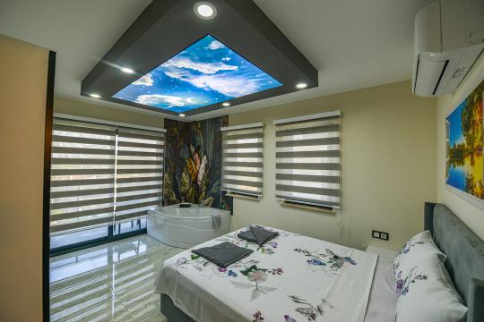 Toplamda 4 yatak odası bulunan villamızın 4 adet banyosu ve 2 adet ayrıca WC'si mevcuttur. Tüm yatak odalarında bulunan ebeveyn banyosu sayesinde misafirlerimiz rahatlıkla konaklayabileceklerdir. Villamızda zemin katında katında Türk hamamı, sauna, ısıtmalı iç havuz ve WC yer almaktadır. 1.katta ise açık mutfak-salon, televizyon, klima ve WC yer alırken, 2. katta birinci ve ikinci yatak odası yer alır. Birinci ve ikinci yatak odalarında birer adet çift kişilik yatak, klima, televizyon, WC-duş ve jakuzi bulunmaktadır. Çatı katında yer alan üçüncü ve dördüncü yatak odalarında ise ikişer adet tek kişilik yatak, klima ve WC-duş yer almaktadır.