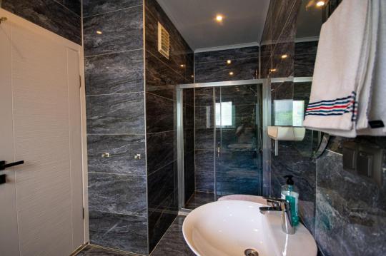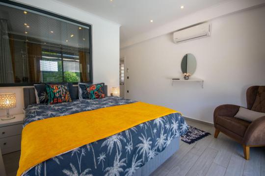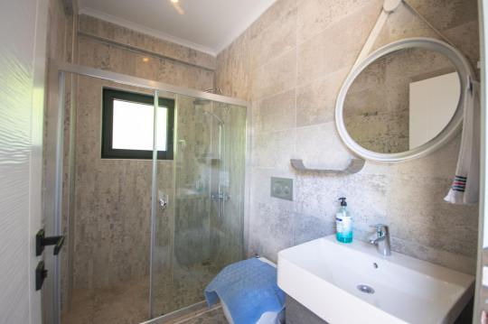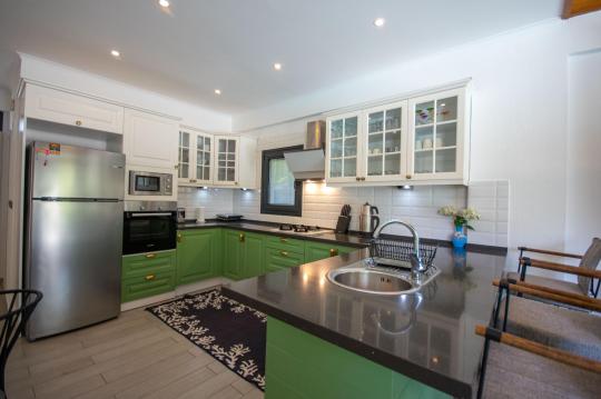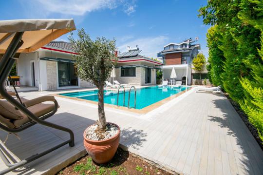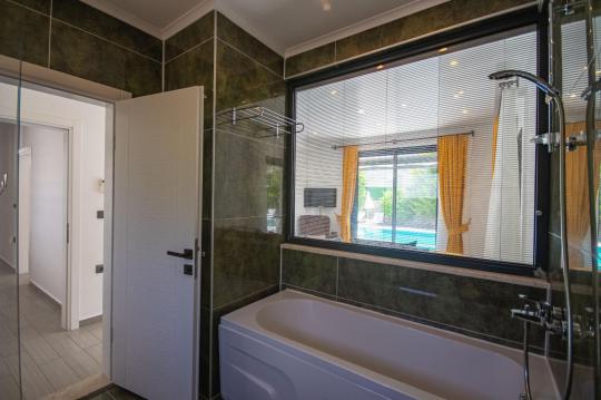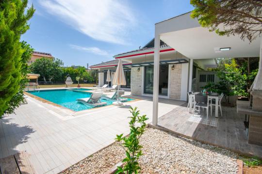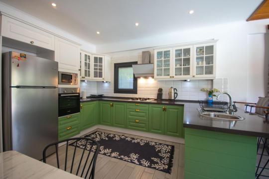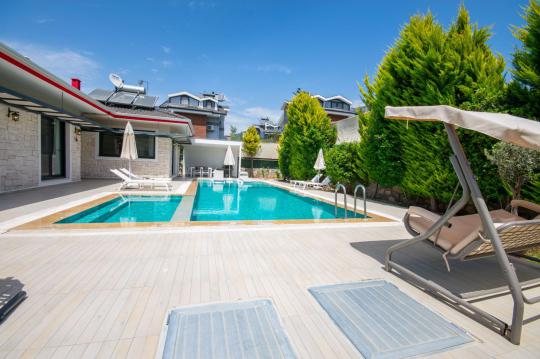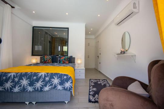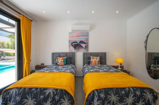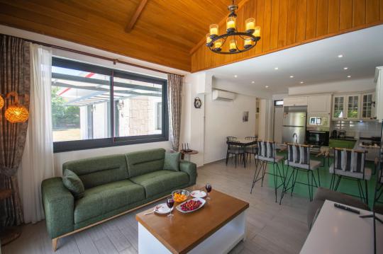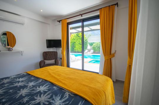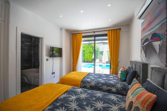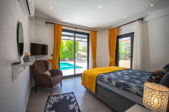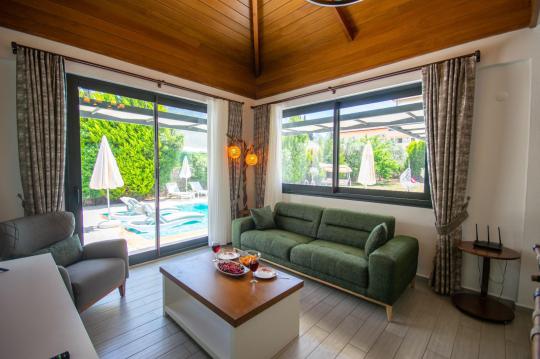 Villamızın içerisinde iki adet yatak odası ve iki adet WC-Duş bulunmaktadır. Birinci yatak odasında çift kişilik yatak, TV klima ve ebeveyn banyosu bulunmaktadır. İkinci yatak odasında iki adet tek kişilik yatak, klima ve WC-Duş, TV bulunmaktadır. Ortak alanda ise salon, mutfak, klima ve TV bulunmaktadır.