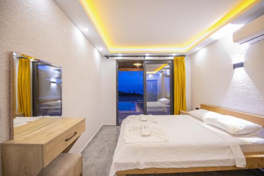 1. Yatak Odası ; 1 Çift Kişilik Yatak + Klima + Komidin + Elbise Dolabı + Ebeveyn Banyo