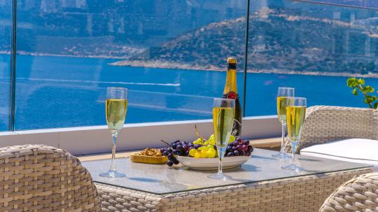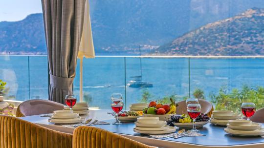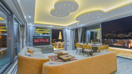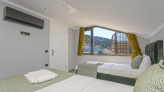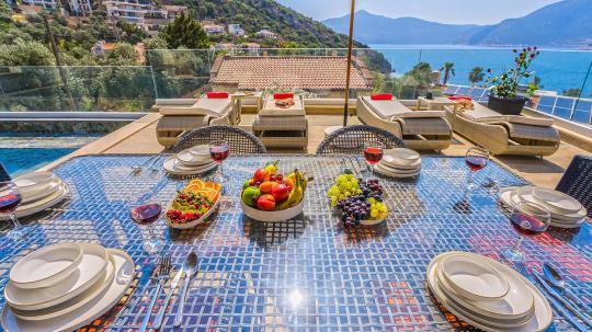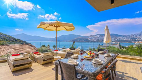 Kalkan,Kışla mevkiinde bulunan, 4 yatak odalı ve 8 kişilik konaklama kapasitesine sahip lüks bir villadır. Eşsiz deniz manzarası, ısıtma sistemli kapalı havuzuyla villa; geniş aileler, muhafazakar aileler ve kalabalık arkadaş grupalrı için uygun bir villadır.