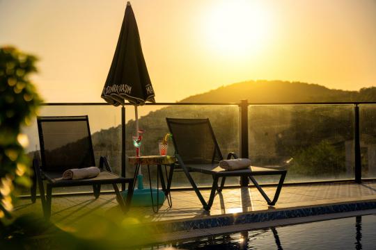Fethiye / Faralya’da bulunan VillaDeniz Rengi'nin benzersiz özelliklerinden biri, ferah bir verandaya sahip olmasıdır. Bu güzel veranda, sizlere özgürce vakit geçirebileceğiniz geniş bir alan sunar. Günün yorgunluğunu atabileceğiniz, açık havada keyifli bir akşam yemeği yiyebileceğiniz veya sadece serin bir içecek eşliğinde dinlenebileceğiniz bir ortam sağlar.
