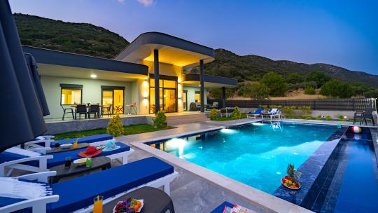 Kalkan Sarıbelen bölgesinde yer alan Villa Derin; Hamam, jakuzi ve özel havuzlu kiralık tatil villasıdır. Villamız 4 yatak odalı olup 8 kişi konaklama kapasitesine sahiptir. Villamız özellikle kalabalık aile ve arkadaş gurupları için ideal bir seçenek durumundadır. İçinde bulunduğu bölgenin muhteşem doğası ve doğa manzarası eşliğinde sakin ve huzurlu bir tatil sizleri bekliyor.