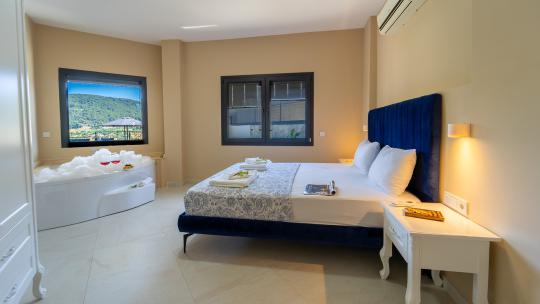2. yatak odasında bir adet çift kişilik yatak, jakuzi, TV ve banyo bulunmaktadır.