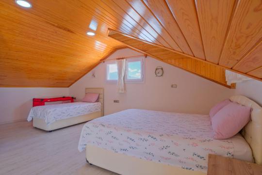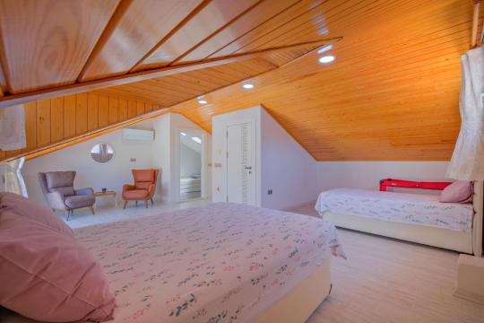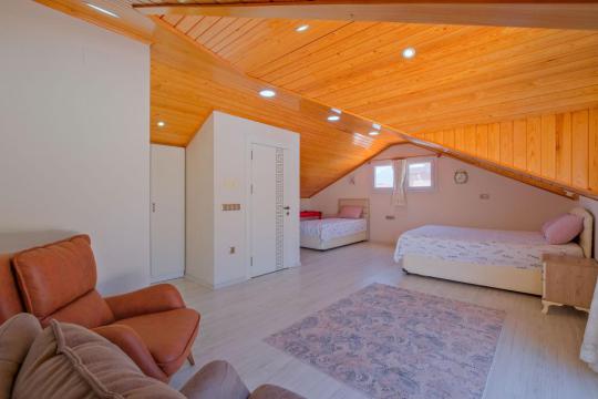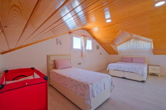 Villamızın içerisinde toplam dört yatak odası ve dört adet WC-Duş bulunmaktadır. Birinci yatak odası içerisinde iki adet tek kişilik yatak, jakuzili ebeveyn banyosu ve klima bulunmaktadır. İkinci yatak odası içerisinde çift kişilik yatak, ebeveyn banyosu ve klima bulunmaktadır. Üçüncü yatak odası içerisinde çift kişilik yatak ve tek kişilik yatak bulunmaktadır. Dördüncü yatak odası içerisinde tek kişilik yatak yer almaktadır.