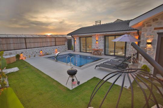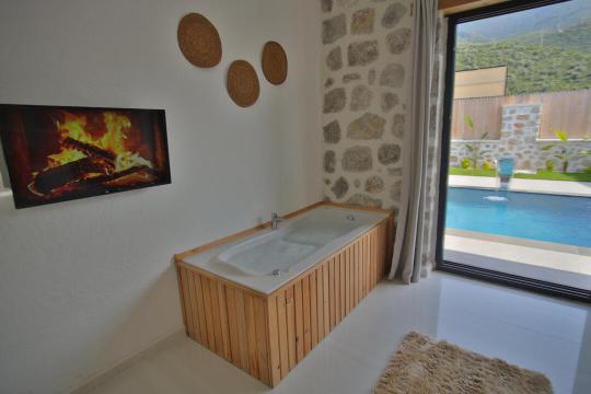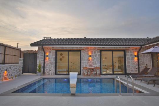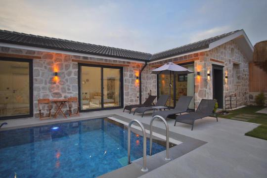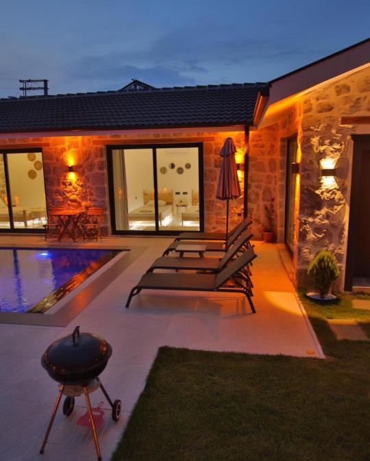 Villa Detay, Fethiye’nin Çalıca bölgesinde yer alan villamız doğayla iç içe konumdadır. 2 yatak odası olup 4 kişilik konaklama kapasitesi mevcuttur. Balayı çiftlerimize veya çekirdek ailelerimize uygun bir villadır. 2 adet tek yatak birleştirilebilir durumdadır. Havuzunda jakuzi sistemi mevcut olup çift kişilik yatak odasında ve bahçede jakuzi bulunmaktadır.