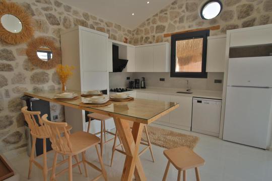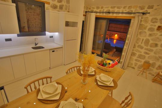 Mutfak : Modern Ada mutfak içerisinde buzdolabı, bulaşık makinesi, fırın, 4’lü ocak seti, çay makinesi, kahve makinesi, tost makinesi, yemek masası ve mutfak araç gereçleri (tabak&bardaklar, tencere&tavalar vb.) bulunmaktadır. Havuz katına çıkış mevcuttur.